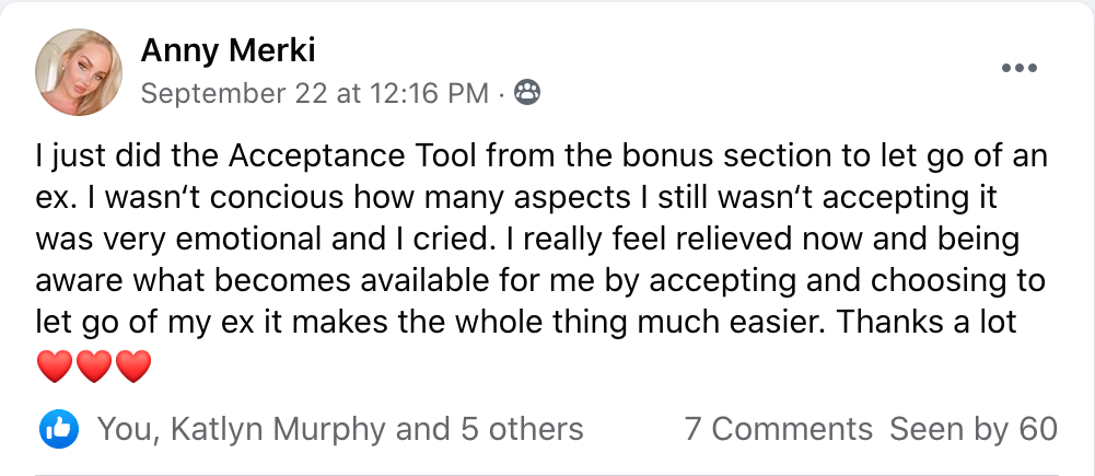 Created by Rebecca Boatman, the go-to love coach and graduate of several emotional intelligence academies, who has coached thousands of women in the area of emotional intelligence.
